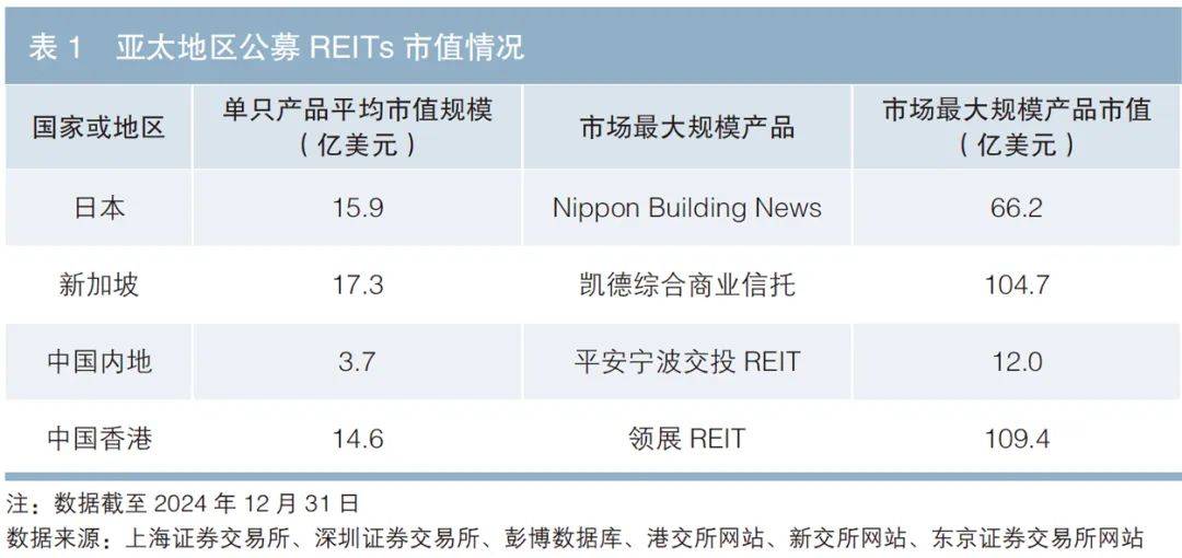 与成熟REITs市场相比,我国基础设施REITs在资产整合和规模效应方面尚存在提升空间,市场缺乏龙头REITs的示范引领。一方面,我国单只REITs产品的最大规模约为12亿美元,平均每只产品规模约为3.7亿美元,与亚太成熟REITs市场相比较,单只产品体量较小(见表1)。另一方面,我国REITs市场还处于“首发+扩募”双轮驱动的阶段,截至2025年7月14日,仅有5只产品进行过第一次扩募,与美国等成熟REITs市场依靠扩募带动规模增长的模式有所不同。